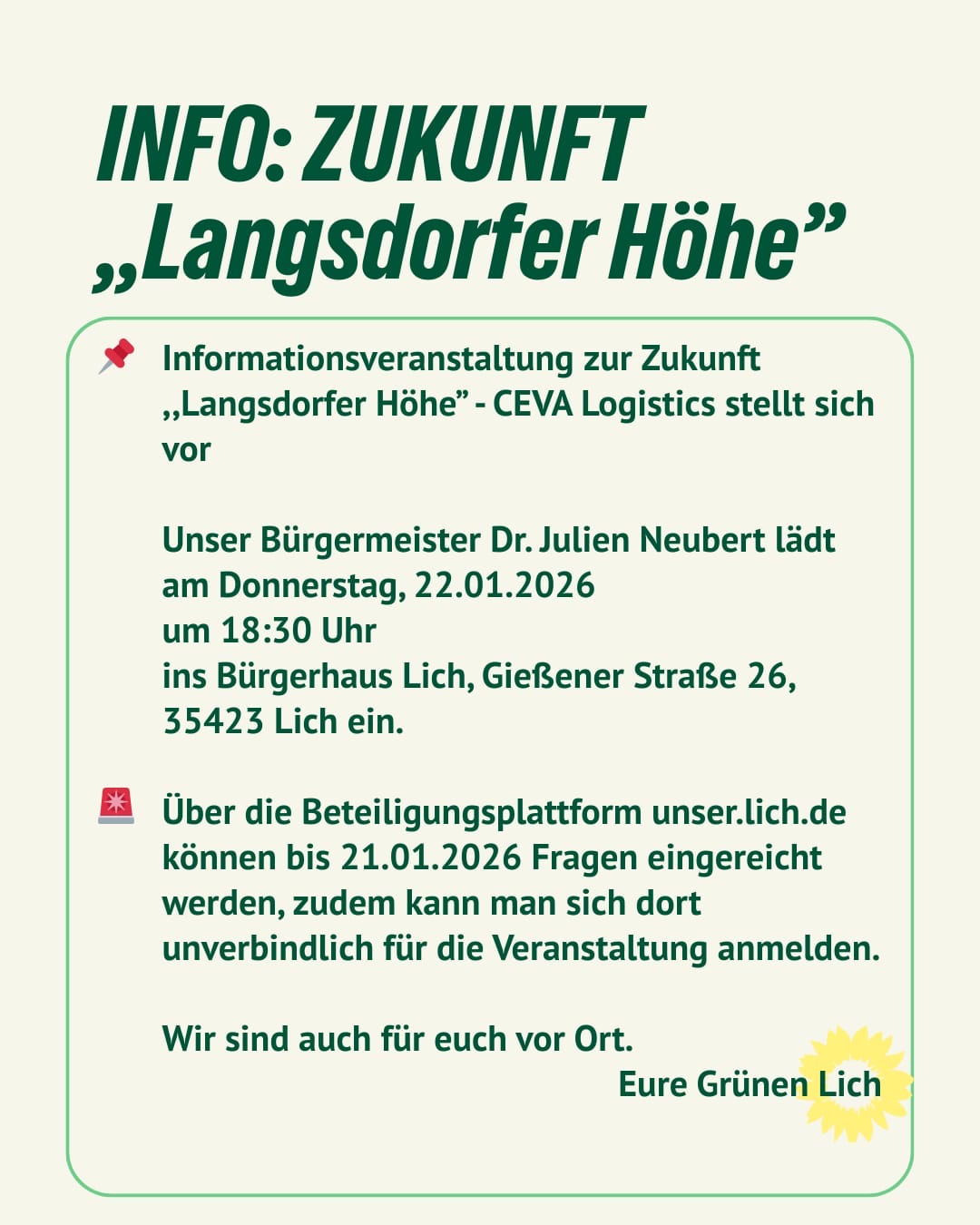 Mit dem Fahrrad möchten wir Vereine und Institutionen in Lich besuchen, die sich für ein aktives und buntes Leben in unserer Stadt einsetzen und somit viel für das Licher Klima bewirken. Auch wenn die Diskussion um die Langsdorfer Höhe viel Vertrauen und “gutes Klima” zerstört hat, so sollten wir uns wieder auf das besinnen, was Lich ausmacht: das gute Miteinander zum Wohle der Stadt! Wir wollen miteinander ins Gespräch kommen und die aktuellen Themen in den Vereinen ansprechen.
